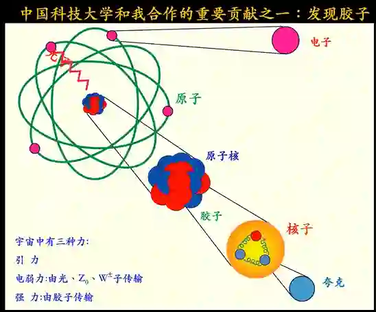 中国科大和我合作的重要贡献之一就是发现胶子。宇宙中有三种力。一种是引力,引力的来源、传输,我们并不了解。电弱力,由光、