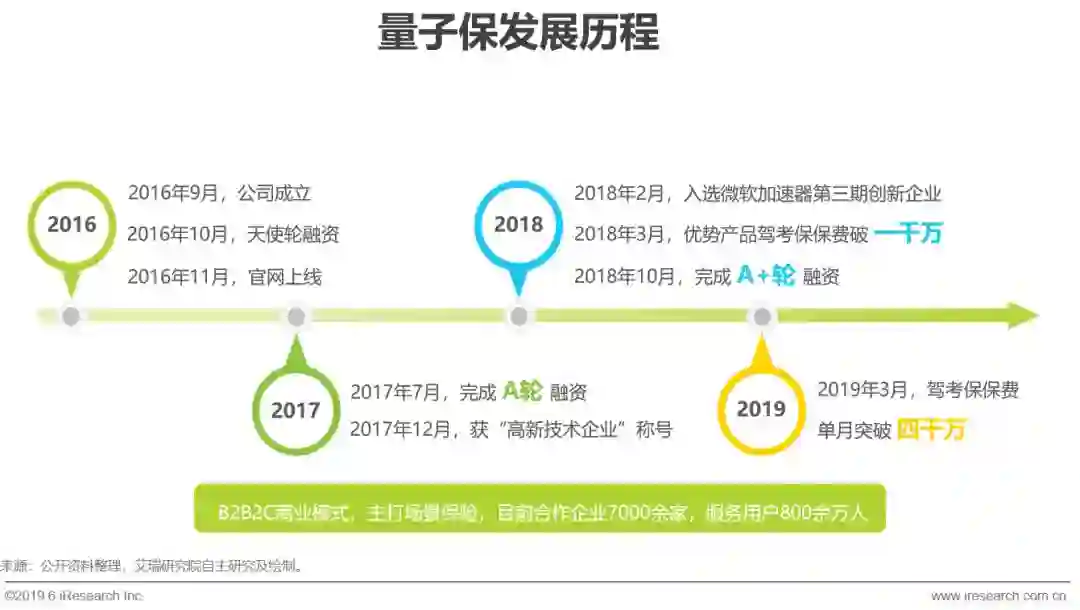 北京量子保科技有限公司于2016年9月成立,目前已完成A+轮融资,拥有全国性保险经纪资质牌照。量子保可以被定义为场景保险代运营平台,其通过线上工具和线下地推的方式,能够触达大量未被覆盖的企业保险需求,并将客户输出给保险公司。在企业端,量子保致力为1000万家中小企业提供简单可信赖的保险和服务,凭借动态保费、大数据精算、全线上流程体验等科技创新优势,帮助企业降低成本,挖掘深度价值,抵御风险。目前客户已覆盖驾培、蓝领用工、宠物、航旅、医美、教育、O2O、共享经济等多领域。