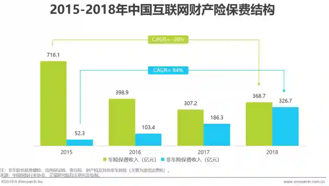 在互联网财产险领域,随着商业车险定价改革的深入,网销车险的价格优势消失殆尽,同时银保监会对第三方车险网络平台的监管逐渐增强,最终导致互联网车险发展陷入困境,直到2018年,车险才开始出现回温迹象。与互联网车险的发展状况截然不同的是,非车险业务保持着快速增长,2018年互联网非车险业务在互联网财产险中的占比已接近50%,这很大程度上得益于互联网财产险向更多场景进行渗透以及意健险的高速增长。不过,车险作为财产险中最重要的部分,未来被互联网化改造仍是大概率事件,随着保险科技以及车联网的应用,互联网车险有望迎来新一轮的增长。