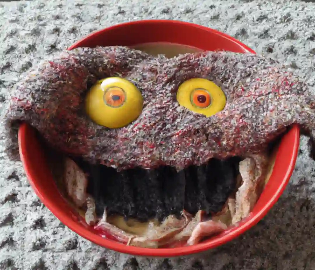 DALL-E 2生成“一碗看起来像怪物、用羊毛织成的汤”