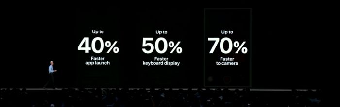 此次,iOS 12在iOS 11基础上,应用打开速度提升40%,键盘的速度提高了50%,在旧设备上打开相机的速度提高度达70%。除此之外,iOS 12还支持动态性能提升,其按压和App打开速度将分别提升两倍。
