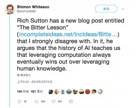 GPT-3出现以后,国际上也出现了比较多的争论,牛津大学Shimon Whiteson教授与强化学习之父Richard S. Sutton教授的争论也引发圈内一大波人的思考: