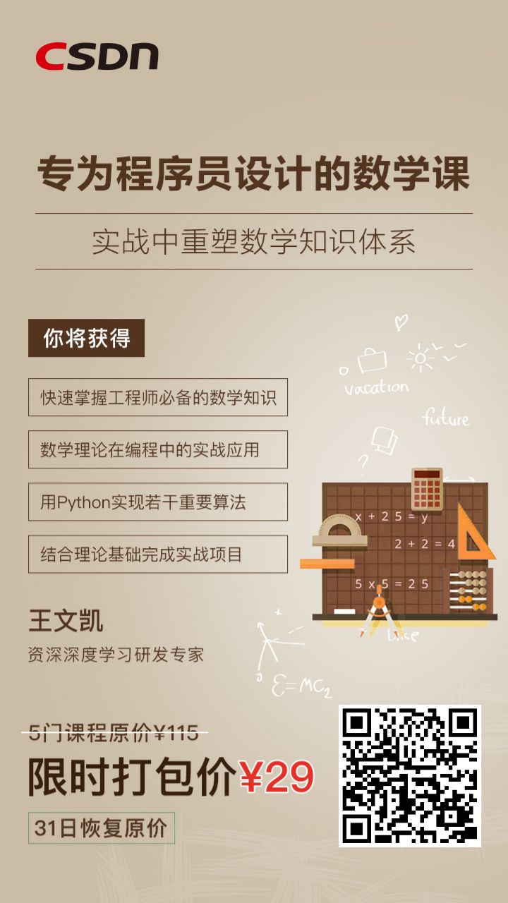 这门系列课由CSDN学院联合百度、阿里云资深深度学习讲师王云凯老师共同研发完成,期望解决你在数学上的一些问题。