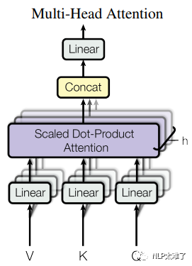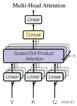 首先将Q、K和V进行 个不同的线性变换操作,得到