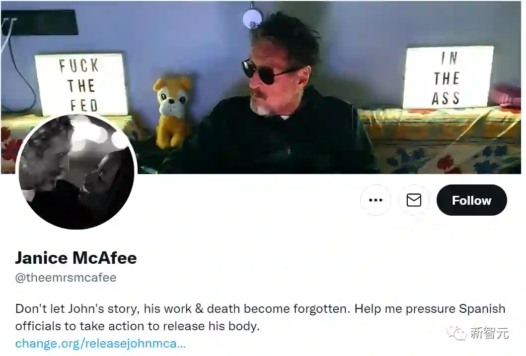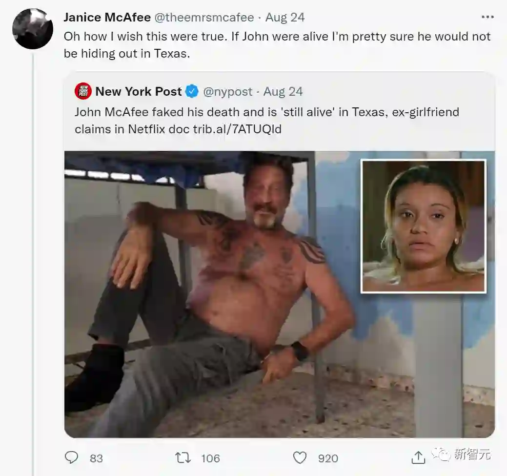McAfee的遗孀、Janice McAfee随后在推特上说,她已故的丈夫确实已经去世。