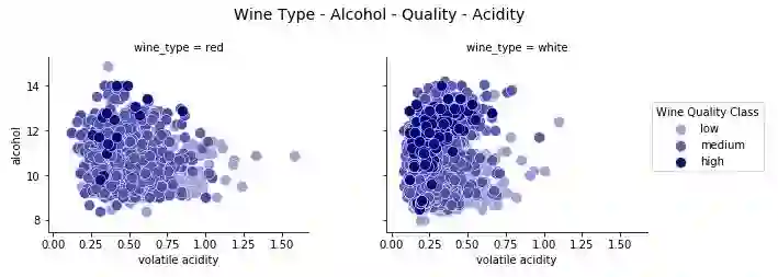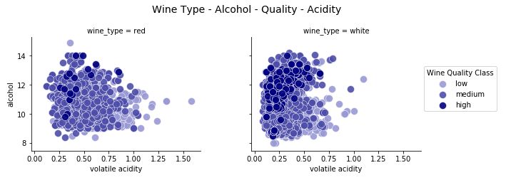 fig.suptitle('Wine Type - Alcohol - Quality - Acidity', fontsize=14)