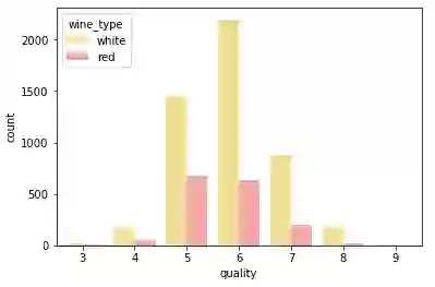 结合色调和形状的表现,似乎白葡萄酒的高品质产量高于红葡萄酒。(可能是由于白葡萄酒的样本量较大)