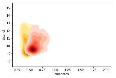 结合形状和 y 轴的表现,我们知道高中档的葡萄酒的酒精含量比低质葡萄酒更高。