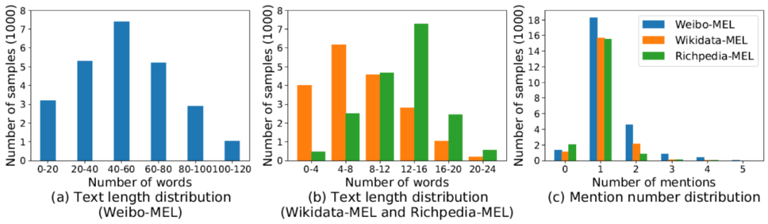 基于上述的MEL数据集构建方法,我们完成了三个MEL数据集构建: