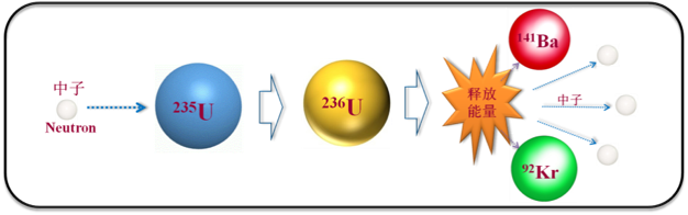 图4. 中子撞击促使铀-235产生核裂变示意图