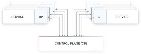 与数据平面(DP)不同,控制平面(CP)并不位于服务交互请求的执行路径上,它用于配置数据平面并从中检索数据(如可观察性信息)。