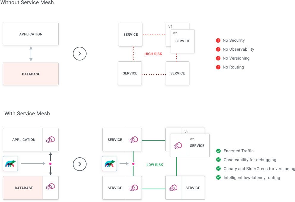 到目前为止,服务网格一直被认为是架构现代化的最后一步,而在此之前,架构已经转换到容器或 Kubernetes。这种方法完全向后兼容。这使得服务网格的采用和业务价值只有在实现了其他大规模转换之后才能实现,而与此同时,这些转换可能会出错。