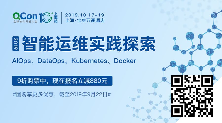 点击「阅读原文」或识别二维码来QCon上海2019了解智能运维相关的领域,包括前沿技术及其最佳落地实践。大会 9 折报名中,立减880元,有任何问题欢迎联系票务小姐姐Ring:17310043226(微信同号)