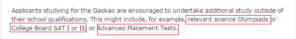 此外,剑桥大学还鼓励有志报考的中国学生,多参加科学奥林匹克竞赛,或者SAT I/II或者美国大学预修课程考试(Advanced Placement Tests)考试。