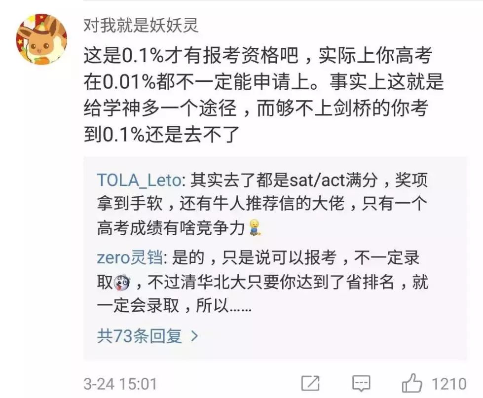 还有一些理智的网友看过之后相当冷静,因为想去剑桥可不是光成绩可以就行……