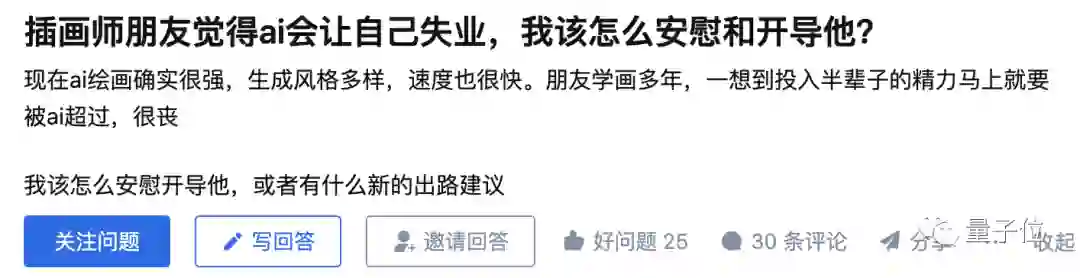甚至在知乎上,还有这样的话题:“插画师朋友觉得AI会让自己失业,我该怎么安慰和开导他?”