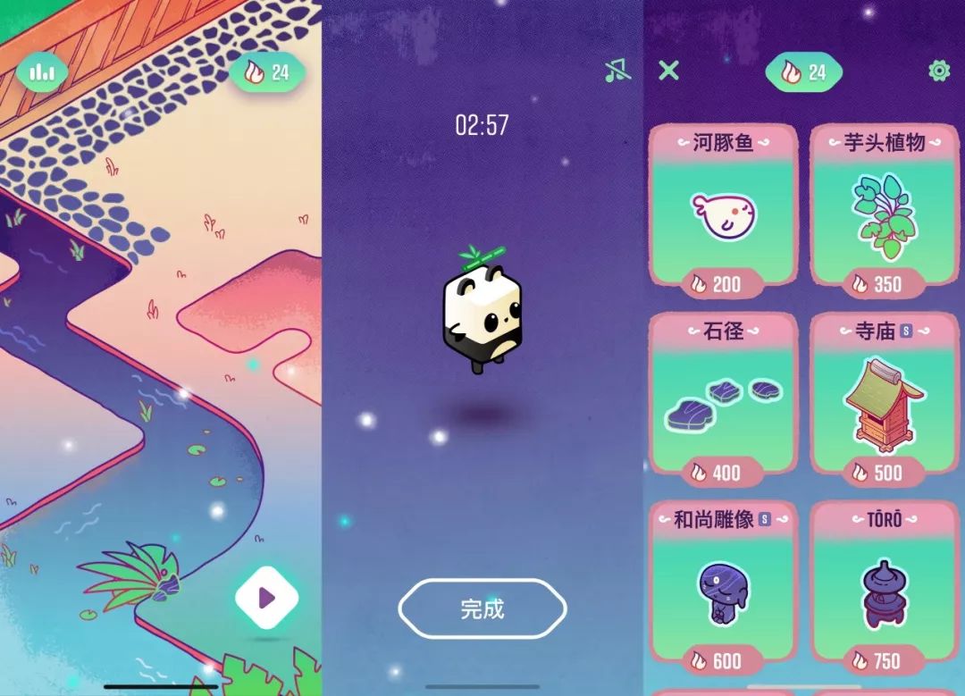 Melly 与 Forest 或是 Walkr 的形式有所类似,虽说基础是一款冥想倒计时应用,却为它披上了一件游戏的外衣。当你跟着熊猫 Melly 完成一次冥想,便会获得一定的卡玛币。你可以使用卡玛币购买一系列庭院装饰,让庭院在一次次冥想中欣欣向荣起来。庭院不时还会有些其他生物来访,你可以试着与他们聊聊天。