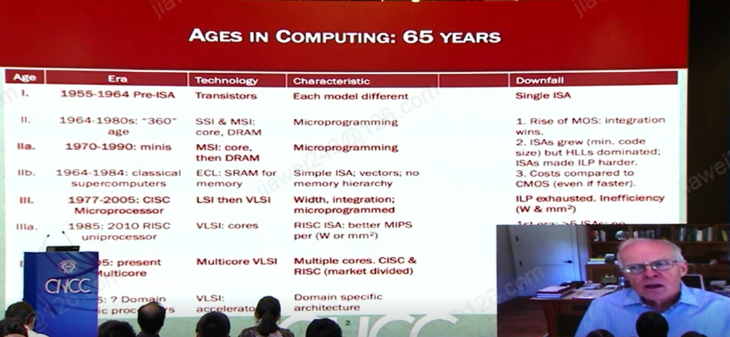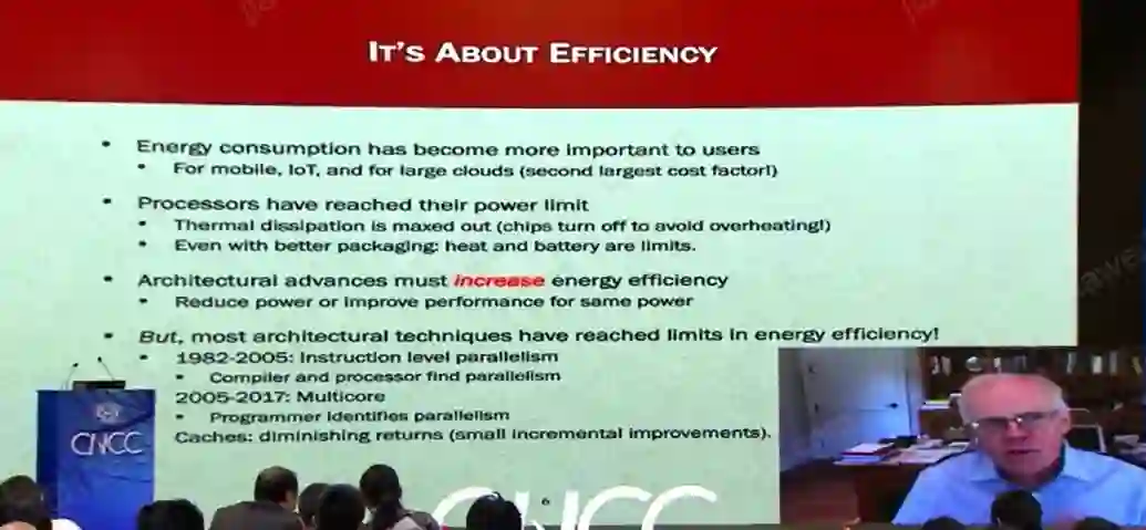 近日,图灵奖得主John Hennessy 在CNCC 2020进行了特邀报告,在报告《第四代计算机体系结构的终结与新的前进道路 》中,他就第四代计算机体系结构的终结与新的前进道路展开论述。