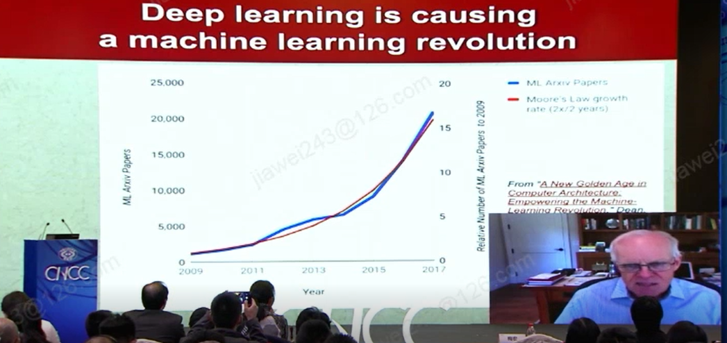GPU只是冰山一角,对特定领域进行定制处理器的需求巨大,当前在机器学习社区,更多人的研究方向是如何用机器学习处理数据,而不是编写大量代码尝试生成有趣应用程序的新方法。目前,机器学习发表论文的增速已经和摩尔定律一样快了。