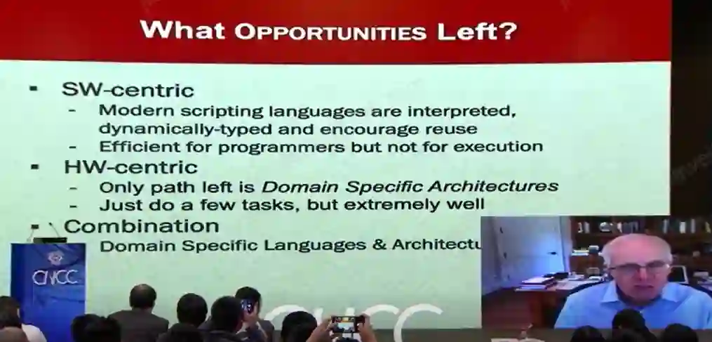 第四个时代即将结束,因为登纳德缩放定律和摩尔定律正在经历它的“没落王朝”,我们正站在第五个时代的门槛上,这个时代的重点以及趋势是专用处理器。