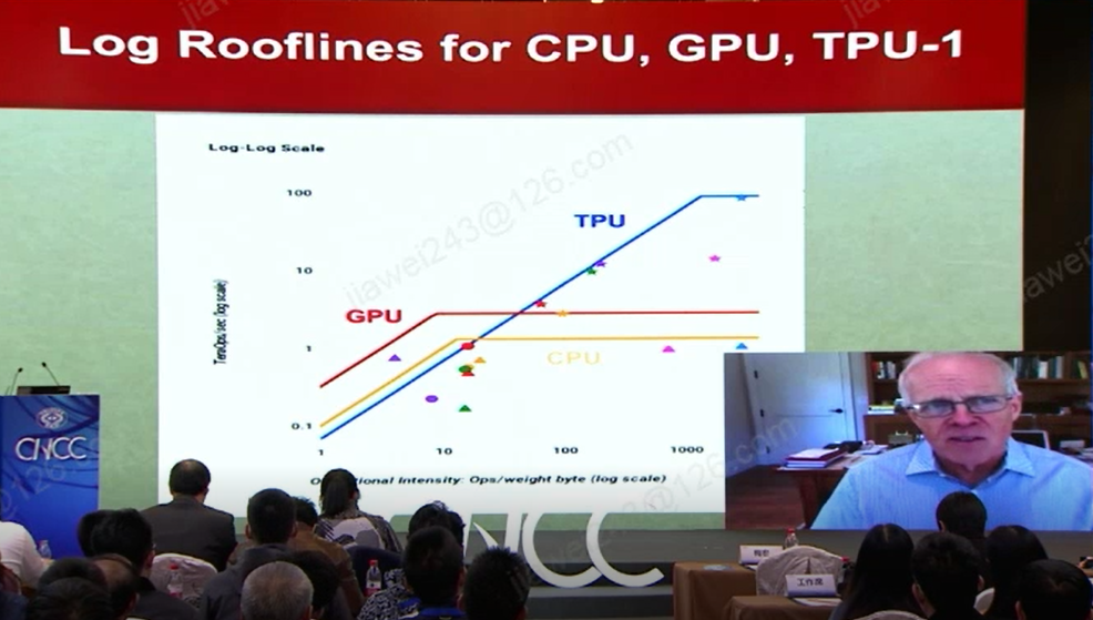 另外,用GPU的场景,往往是计算强度较低的需求,这些需求与内存相关。使用TPU的场景是计算大量矩阵,而不用移动那么多的数据。CPU的那条线更加平缓,因为它在内存、宽带、通用之间做出了权衡。
