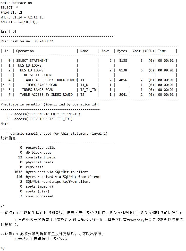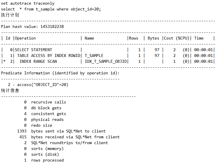 那咋办?我们用set autotrace on 的方式来跟踪SQL的执行计划,如下: