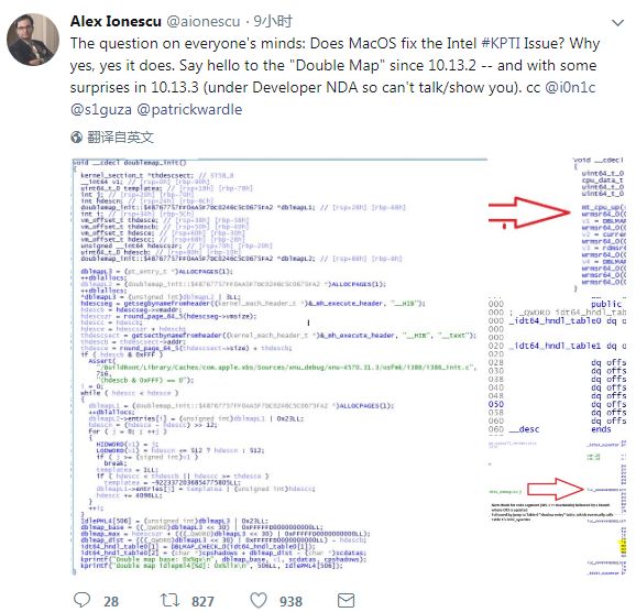 有安全人员强调,这是一个 Intel x86-64 处理器的设计缺陷,已经存在了逾十年。问题被曝出后,Linux 社区的开发者们都在加紧检修 Linux 的虚拟内存系统,并释出 Kernel Page Table Isolation 修复代码。与此同时,微软预计在下个补丁日发布对 Windows 系统的必要调整,其 beta 版本已经提供给测试者。苹果也会在即将发布的 10.13.3 更新中修复更多的内容。