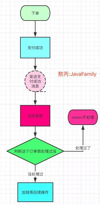 那这个时候如果别的系统这个订单号消息重试了,你是不是又进来了,你去查询流水你发现没流水你以为没加,你执行加钱的操作,结果那条延迟的也好了,是不是就加了两次。