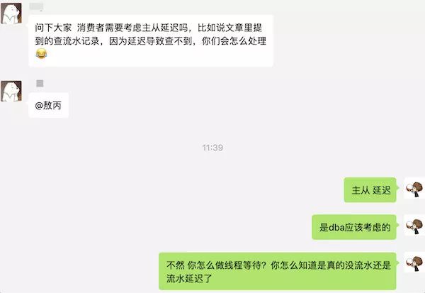 正常开发中确实会有,但是主从延迟这个应该让DBA(数据库管理员 Database Administrator)去考虑的,但是呢我说过不能写有逻辑漏洞的代码嘛,其实很简单,把他放Redis嘛,设置一个30分钟左右的时间,这期间的重复消费都可以避免,要是延迟超过30分钟了那其实问题已经很大了,DBA会知道的。