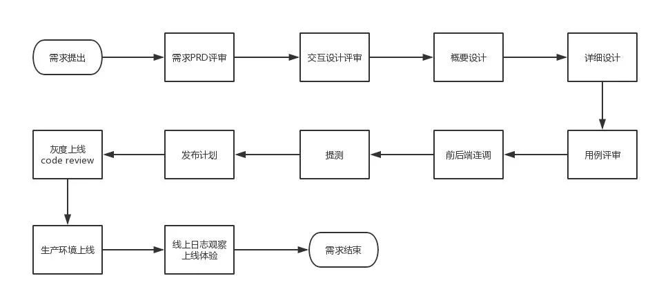 既然都说了帅丙是要用一个产品的研发流程角度去介绍软件,那我们先看看一个产品有哪些研发流程,帅丙就用自己接触的阿里系的研发流程举例了,这也基本上是互联网大厂的研发流程了,可能细节有出入,但是绝对大同小异。