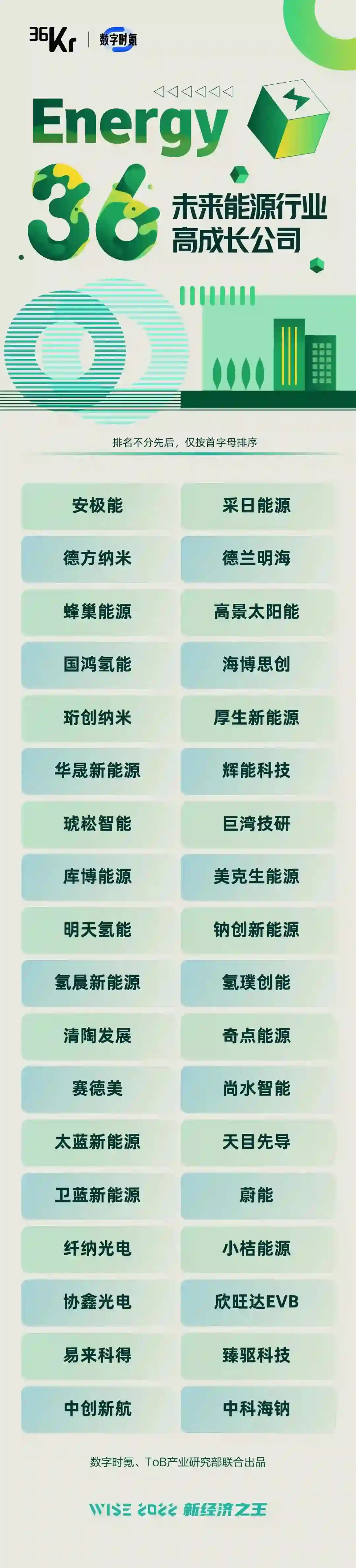 36氪期待新能源高成长企业们都能以技术创新为舟,驶向未来能源体系的星辰大海。