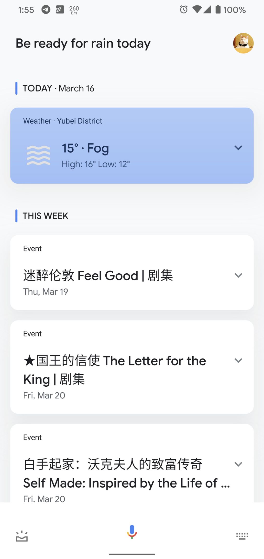 Google Assistant(Android):前些天开始向用户全面推送采用全新设计的快照页面(此前为「动态 Updates 页面),相比旧版,快照页面采用了大量可交互的圆角卡片,同时更加突出卡片阴影,但展示内容依然以与用户相关的上下文信息为主,包括天气、日程、股票动态、停车位置等等。