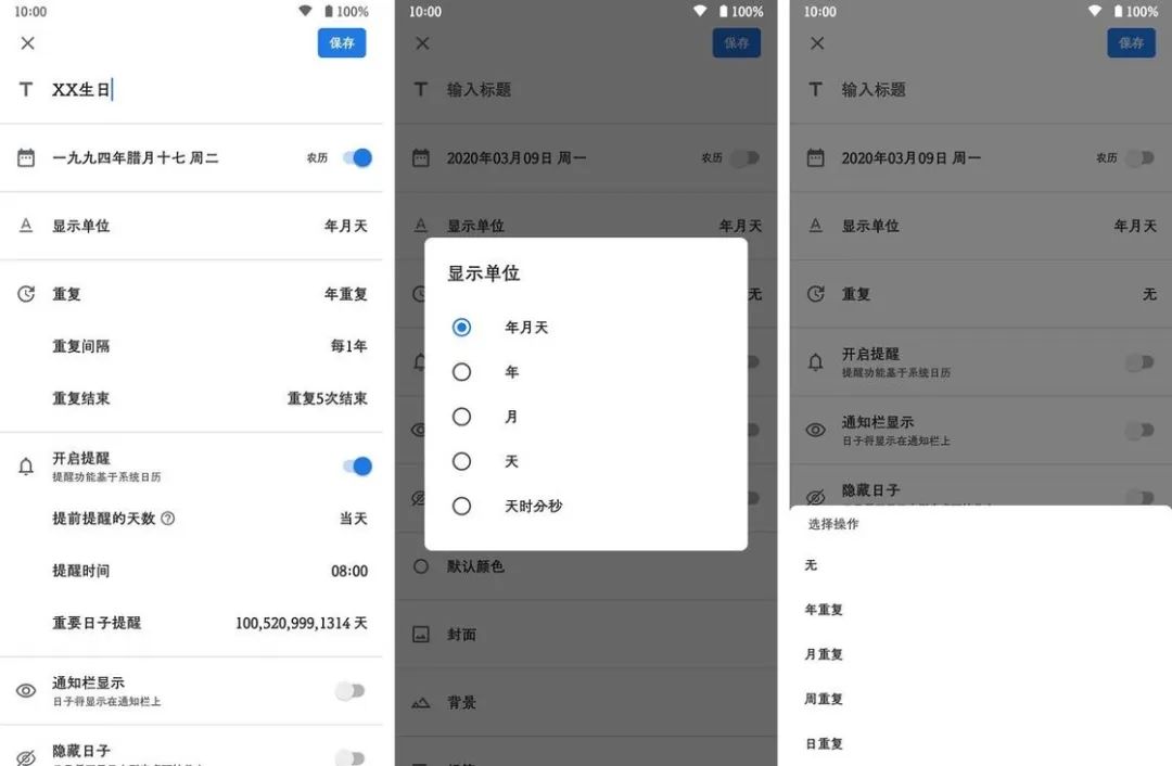 一个个平凡的日子构成了我们的生活,即便时间未曾为任何一人静止,每一天都看似一成不变,但是总有一些日子在我们平淡的生活当中熠熠生辉,值得纪念。在移动端从来不缺少纪念日类的相关应用,无论是设计精美的 Hurry,还是跨平台的倒数日,其功能都在于帮助用户记住一些具有特殊意义的日子。今天介绍的这款应用——记得,也是一款用于记录特殊日子的应用。作为一款国人开发的应用,记得或许不是最漂亮的纪念日类应用,但它却是功能最为完备和贴心的那一个。在添加纪念日的时候,记得允许用户对事件的各个属性加以定制,无论是农历、阳历的转换,还是重复次数、日历提醒的加入,抑或是对于封面、背景的完全自定义,都给予了用户最大的自由度。借助于记得的提醒功能,用户还能曲线救国地实现在 Google Calender 记录他人的农历生日这一需求。