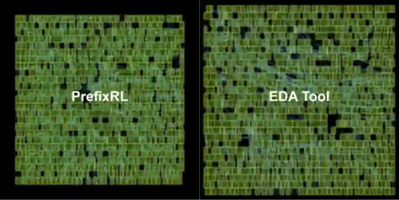 如果 AI 学习设计这些电路会怎么样呢?在近期英伟达的论文《PrefixRL: Optimization of Parallel Prefix Circuits using Deep Reinforcement Learning》中,研究者证明了AI不仅可以从头开始设计这些电路,而且AI设计的电路比最先进电子设计自动化(EDA)工具设计的电路更小、更快。