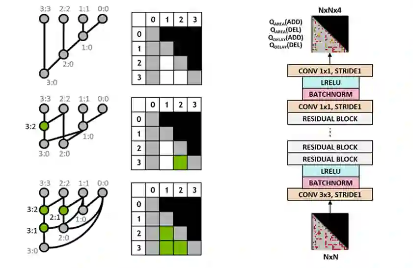 研究者将算术电路设计视为一项强化学习(RL)任务,其中训练一个智能体优化算术电路的面积和延迟属性。