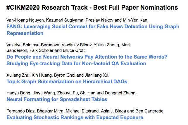 10月19日-10月23日,第29届国际计算机学会信息与知识管理大会(CIKM 2020)在线上召开,官网:https://www.cikm2020.org/ 。