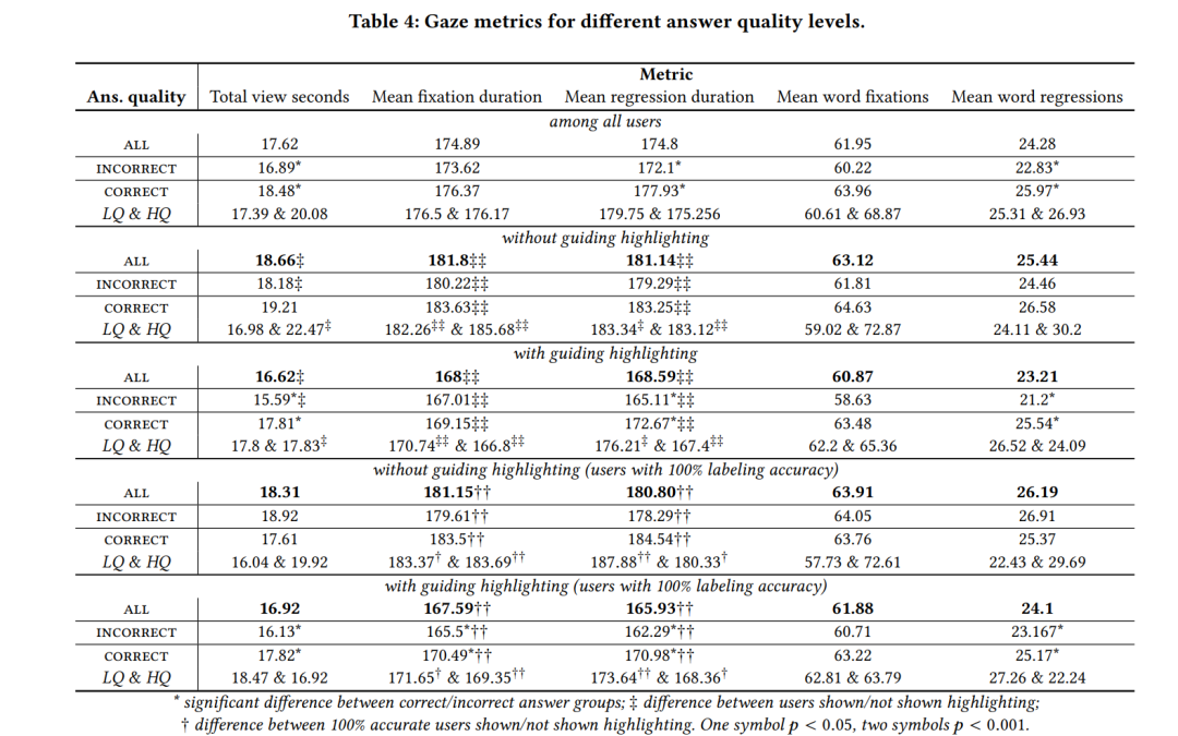 用户的任务是评估答案的质量、正确性、完整性和简洁性。答案中的单词也会被注释:既通过用户标记显式地标注,也通过从眼球追踪获得的用户注视数据中隐式标注。