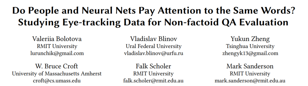 o People and Neural Nets Pay Attention to the Same Words? Studying Eye-tracking Data for Non-factoid QA Evaluation》