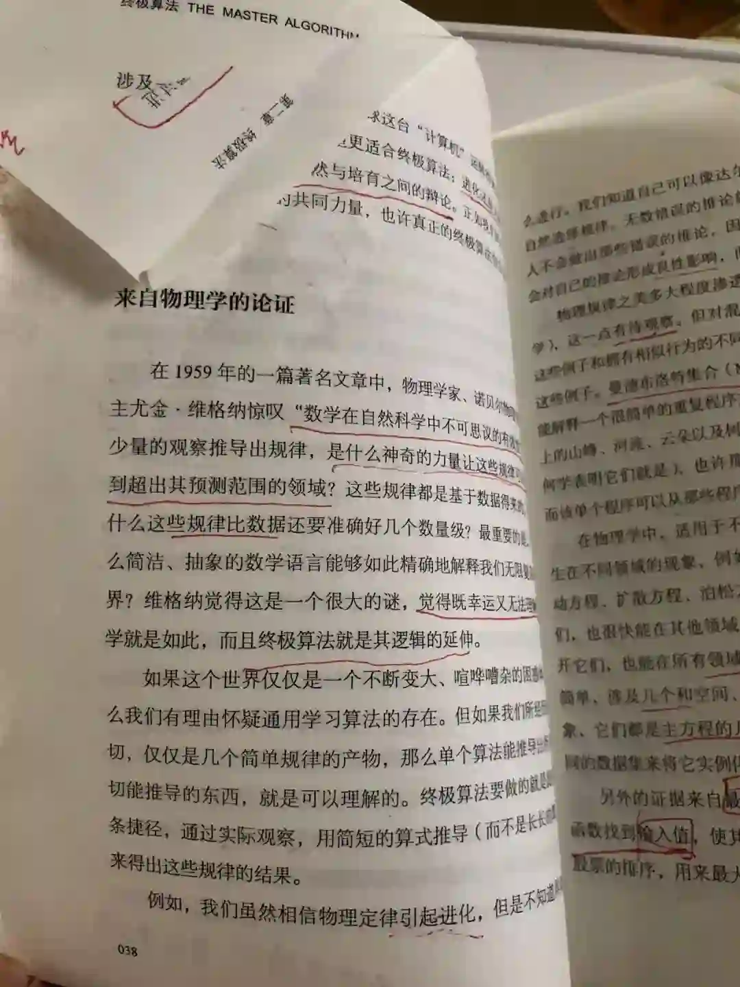 这本书深深地吸引住了我,我读得很慢——很多地方需要停顿下来思考和揣摩,因此得到了很多启发。数学、算法、人工智能是我特别感兴趣的领域,很久以来我就一直在努力从各种著作、技术资料乃至新闻报道的只言片语中捕捉有价值的信息,并且像不断变换着信息片断来拼图一样,在心中构画其发展的前景。而此次阅读,使我得以把自己之前隐约有所意识却并想透的很多问题、现象联系在了一起,所以感受到了极大的兴奋和欣悦。