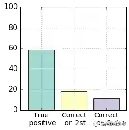最后的 CNN 模型交叉验证准确度是 58%,其具有积极意义。因为人类面部表情经常由多个基本表情组合,仅仅用单一表情是很难描述。本例中,当训练模型预测不准确时,正确的标签一般是第二相似的表情,见图 8(浅蓝色标签)。