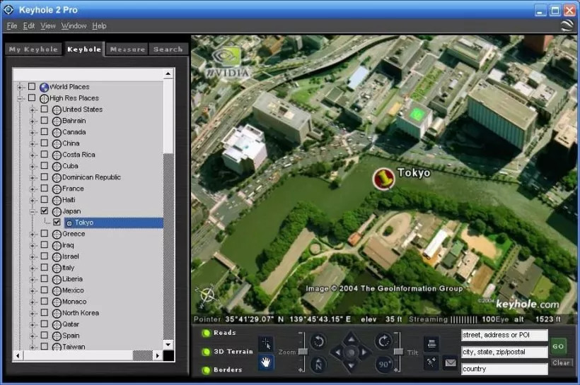 EarthViewer和Keyhole 2 Pro(专业版)的操作界面,请注意右下角的搜索栏。图片来源:Keyhole
