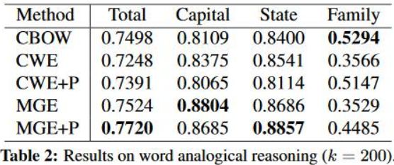 在 Word Similarity 和 Analogical Reasoning 上验证了其有效性。