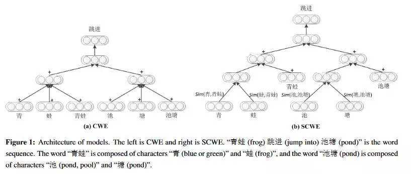 具体来说,是基于前面的CWE模型,虽然CWE已经考虑了词的内部组成,增加了语义信息的表示,然而,却忽略了一些问题,在每一个词和他们的组成部分(单字)之间,CWE把单字和词之间的贡献作为一致的,这篇论文提出,他们之间的贡献度应该是不同的,CWE忽略了这一问题,本文要利用外部语言来获取语义信息,计算词与单字之间的相似度来表示其贡献的不同,完善相关工作。