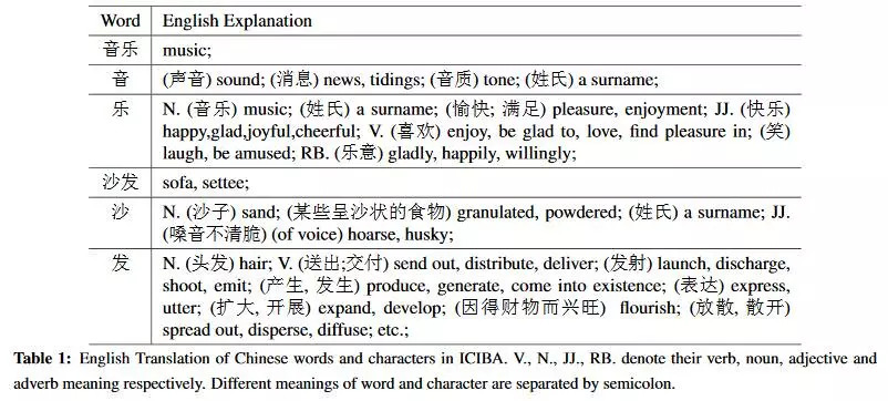 在中文中,相同的词和字符,虽然被应用为不同的词性,但是想要表达的语义信息是一样的。因此,这些被合并为一个,共用一个语义表示。如下图,多个乐字可能仅仅在不同的词性之间有所不同,然而语义信息几乎相同。