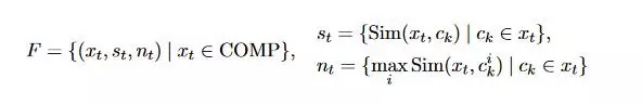 如果max(Sim(x_t, c_k)) > w, c_k是x_t中的第几个字,这样x_t就被定义为 compositional word,对于 compositional word 定义如下图,对于音乐这个词来说,就被定义为(“音乐”, {Sim(“音乐”, “音”), Sim(“音乐”, “ 乐”)},{1,1})。