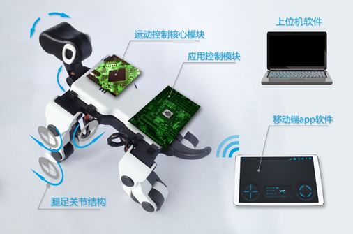 这种小型四足仿生机器人主要模拟动物的行为,包括静步态、Tro 步态,Pace 步态,Bound 步态,可以跑得很快,也可以打滚翻起来。