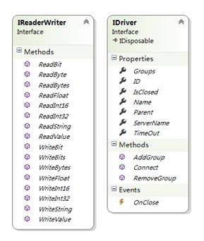 IDriver 接口的方法,都是和连接有关的。Connect方法负责连接、IsClosed判断连接是否断开、TimeOut设置超时、OnClose事件在连接断开时触发。