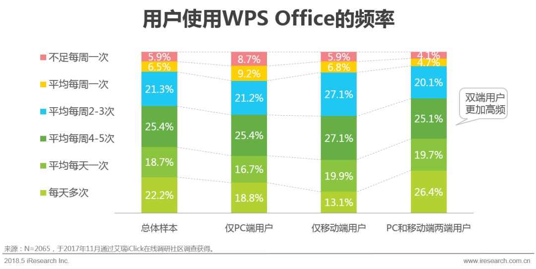 ◈用户停留时间长:用户对于WPS Office具有很高的使用黏性和较高的使用频率。用户每周都会花费一定的时间停留在WPS Office产品上。
