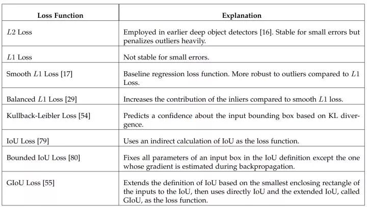 Smooth L1 Loss 由 Fast R-CNN 提出,降权了那些过大损失的样本(可能是 outliers)。Balanced L1 Loss 由 Libra R-CNN 提出,提升了 inliers 的权重,即相当于进一步降低了 outliers 的权重。其他的研究如下所示: