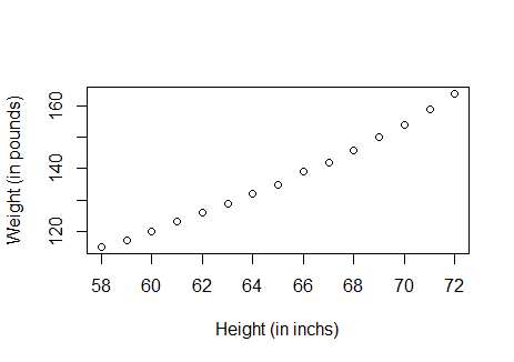 xlab = "Height (in inchs)", ylab = "Weight (in pounds)")